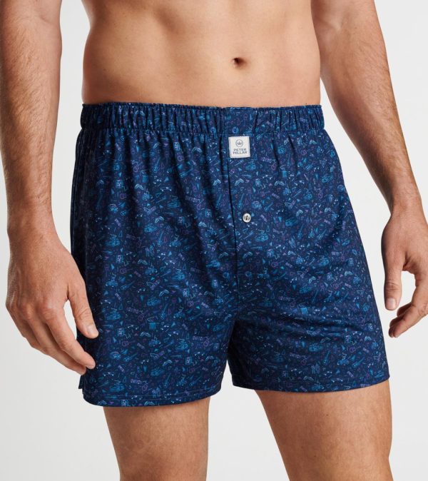 Experience premium comfort with these retro-inspired boxers featuring exceptionally soft performance fabric. Designed for active lifestyles, they deliver superior moisture management, effortless care, and advanced odor resistance with full four-way stretch mobility. Showcasing a custom-designed 1980s themed pattern that stands out, finished with signature Peter Millar branding on the waistband and convenient button fly closure.
