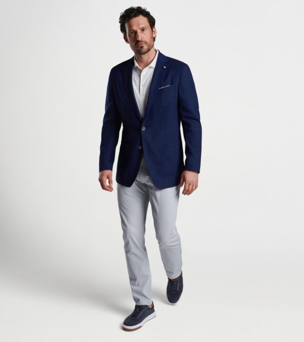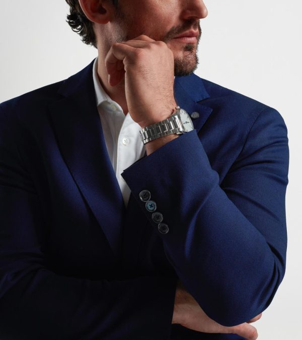 The Excursionist Flex Blazer features premium Italian craftsmanship with a sophisticated wool-silk blend that offers exceptional comfort and performance. Engineered with strategic stretch and water-resistant protection, this versatile jacket keeps you looking polished while navigating your busy lifestyle. The half-lined construction ensures effortless layering and all-day comfort, while refined details like the notched lapel, barchetta chest pocket, and teardrop buttonholes deliver elevated style. Finished with exquisite hand-tacked lapel pins, smoked mother-of-pearl buttons, and seven thoughtfully designed interior pockets for ultimate functionality.