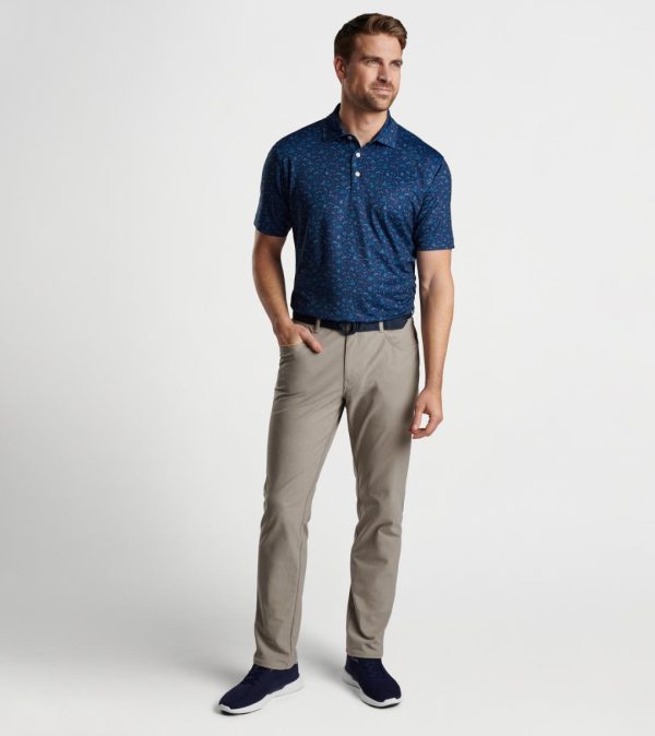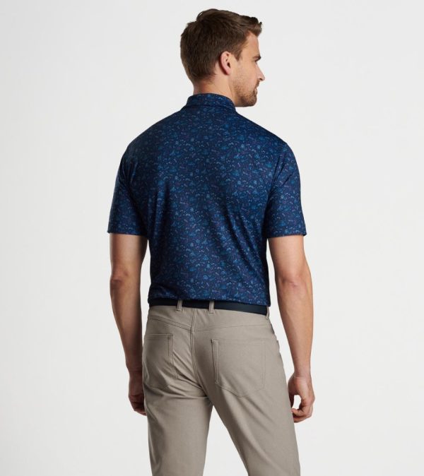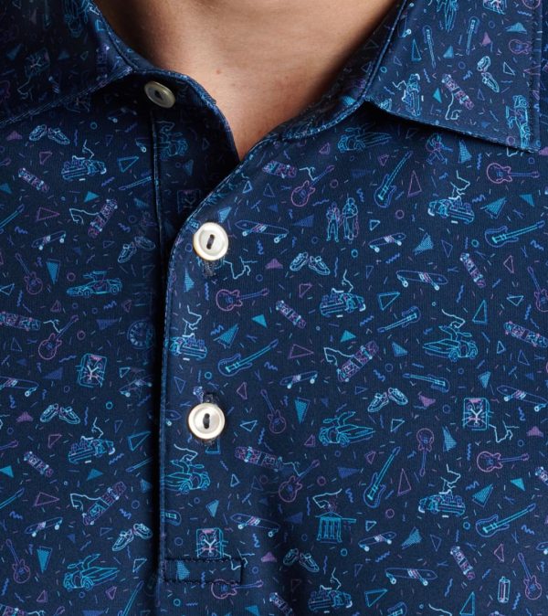 Experience exceptional comfort and performance with our signature polo that moves with you throughout your day. Crafted from premium antimicrobial jersey fabric featuring advanced moisture-wicking technology, UPF 50+ sun protection, and effortless care, with four-way stretch for maximum mobility both on and off the golf course. This polo showcases a custom-designed retro ’80s themed print for standout style. Finished with a sophisticated self-fabric collar and three-button placket.