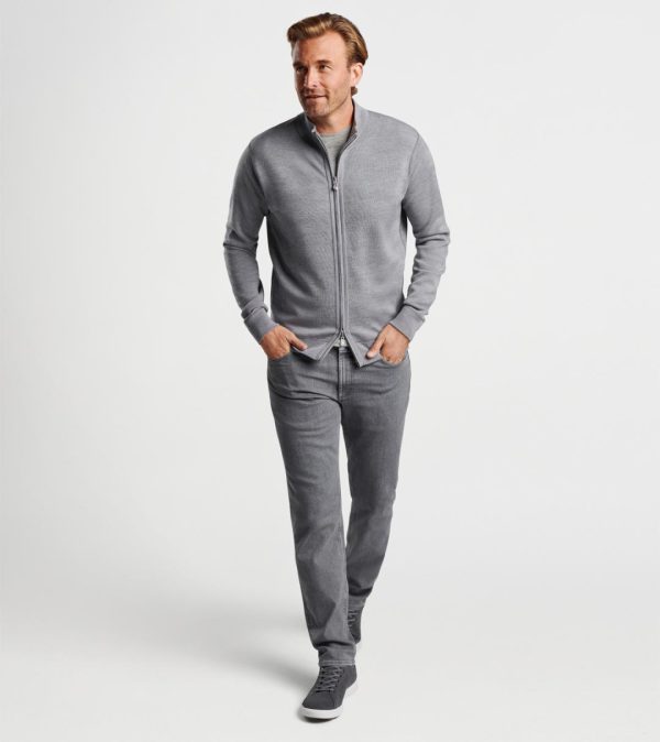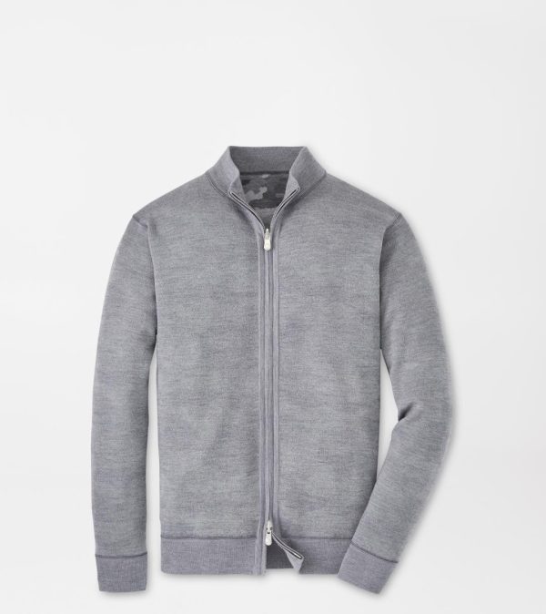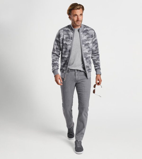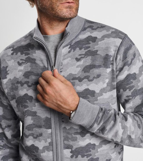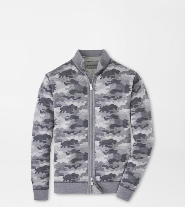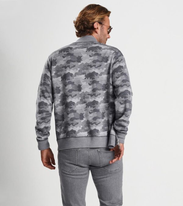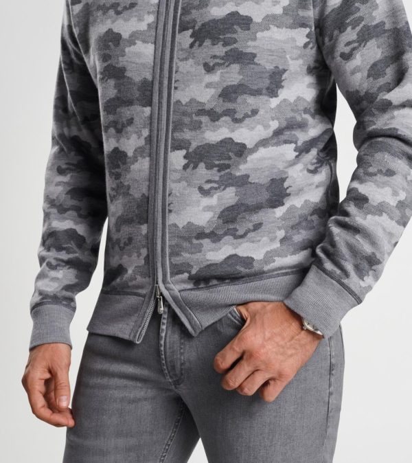 Crafted from exceptionally soft Merino wool in a sophisticated double birdseye stitch, this versatile reversible cardigan features a timeless grey hue on one side and an eye-catching camo pattern on the reverse. Designed with clean cover stitching and a convenient two-way zipper for effortless style.