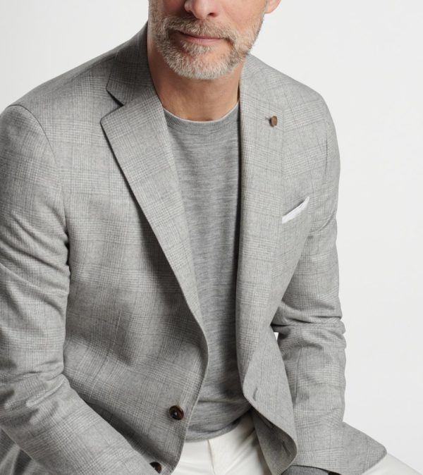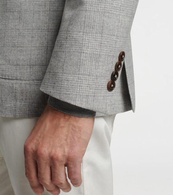 Crafted from premium Italian wool-cashmere fabric, this sophisticated plaid soft jacket offers a refined alternative to traditional solid sport coats. Designed with a natural shoulder construction and half-lined interior for exceptional comfort and effortless layering. Features elegant notched lapels, a barchetta chest pocket, refined teardrop buttonholes, and is finished with hand-tacked lapel detailing and authentic Italian horn buttons for superior craftsmanship.