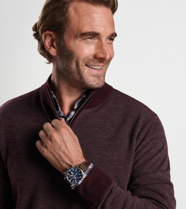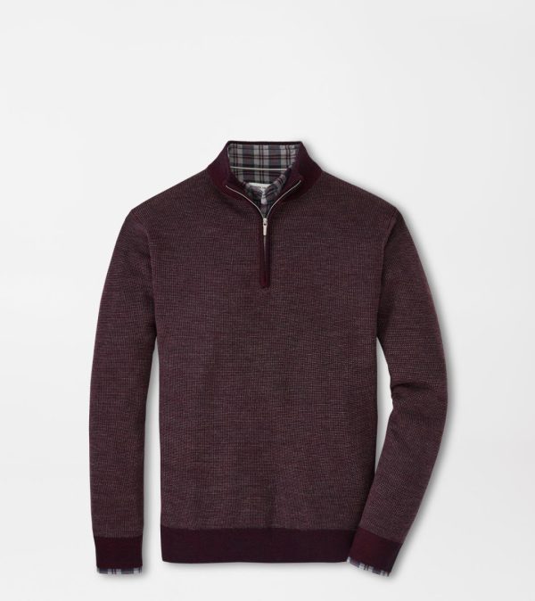 This sophisticated quarter-zip sweater features an eye-catching three-color Birdseye stitch pattern that delivers exceptional style. Crafted with a premium 16gg Merino wool knit, it offers the ideal weight for comfortable three-season versatility. Finished with refined ribbed detailing at the collar, cuffs, and hem for a polished look.