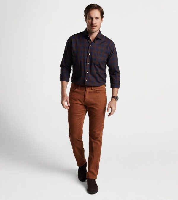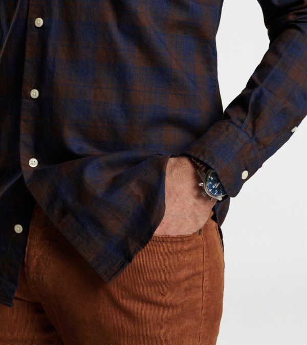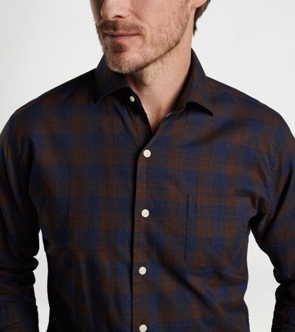 Experience exceptional comfort with this timeless plaid sport shirt crafted from premium breathable cotton fabric. Features a sophisticated spread collar design, refined French placket, and elegant double-button barrel cuffs for polished everyday wear.