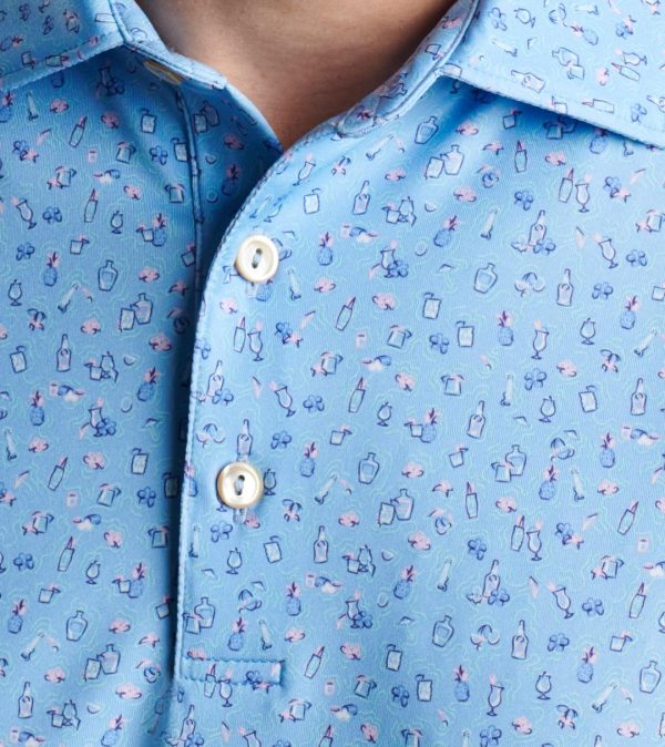 Experience exceptional comfort and performance with our signature polo, designed to move with you throughout your day. Crafted from premium antimicrobial jersey fabric that delivers superior moisture management, advanced UPF 50+ sun protection, and effortless care. The four-way stretch construction ensures maximum mobility whether you’re on the golf course or enjoying casual activities. Features a unique custom print inspired by tropical cocktail ingredients, finished with a sophisticated self-fabric collar and three-button placket for polished styling.