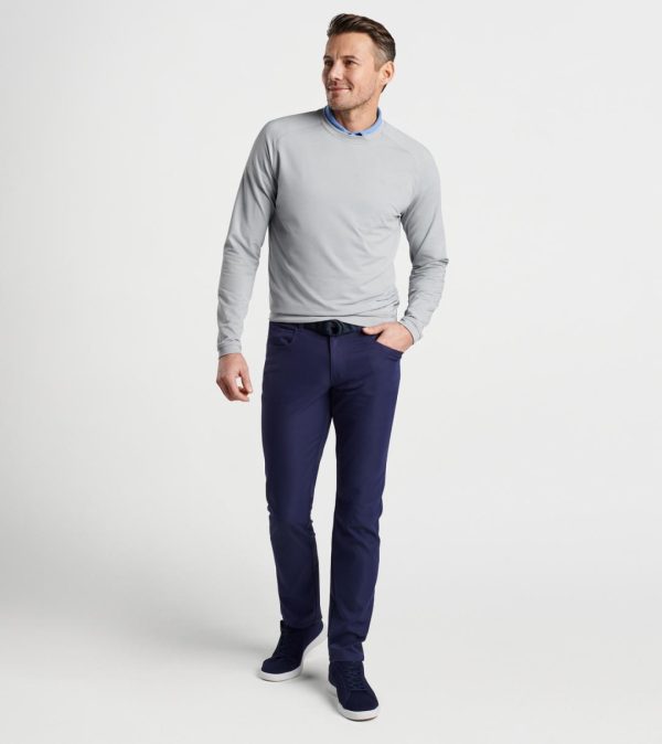 Experience exceptional comfort and performance with the Cradle Crewneck, your go-to choice for both golf course excellence and casual off-course style. This premium pullover delivers superior four-way stretch technology, advanced moisture-wicking capabilities, and effortless care maintenance, all while maintaining a clean, classic sportswear aesthetic. Designed with raglan sleeves for enhanced mobility and finished with secure banded cuffs and hem for perfect fit retention.