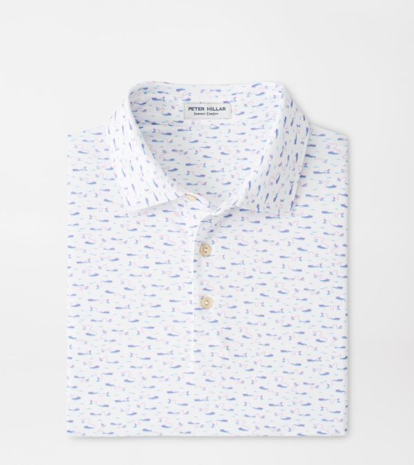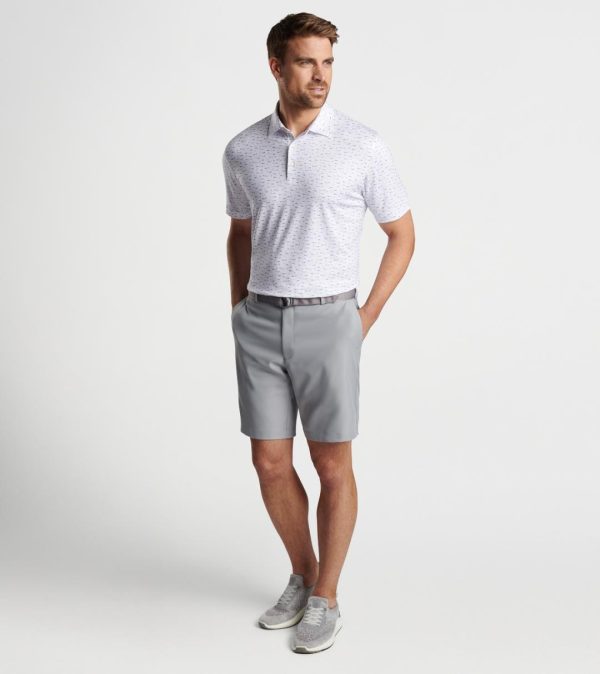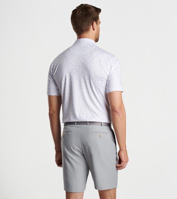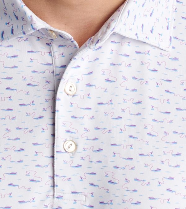 Experience exceptional comfort and performance wherever your day takes you with our signature performance polo. Crafted from premium antimicrobial jersey fabric featuring advanced moisture-wicking technology, UPF 50+ sun protection, and effortless care, with four-way stretch for maximum mobility both on and off the golf course. This stylish polo showcases a custom-designed watersport print pattern. Finished with a sophisticated self-fabric collar and three-button placket for a polished look.