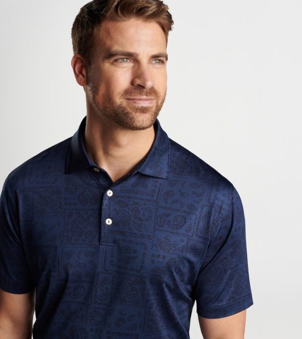 Experience exceptional comfort and performance in our signature polo, designed to move with you throughout your day. Crafted from premium antimicrobial jersey fabric that delivers superior moisture-wicking capabilities, UPF 50+ sun protection, and effortless care, with four-way stretch for maximum mobility both on and off the golf course. This standout polo features an exclusive distressed paisley pattern that adds distinctive style. Finished with a refined self-fabric collar and three-button placket for a polished look.