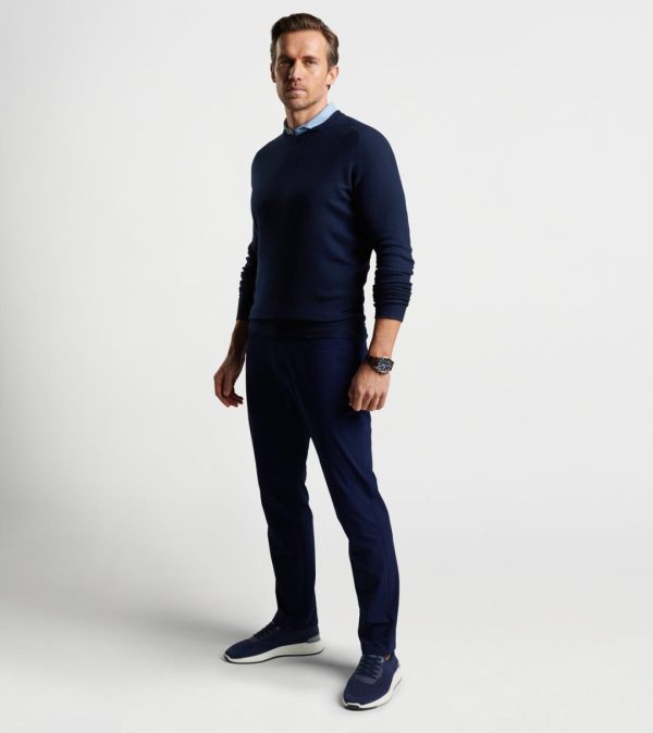 Experience exceptional comfort with this lightweight sweater crafted from ultra-soft 17.5 micron Merino wool featuring an elegant honeycomb stitch pattern. The distinctive high-V neckline offers a modern twist that bridges the gap between classic V-neck and crewneck styles for contemporary sophistication.
