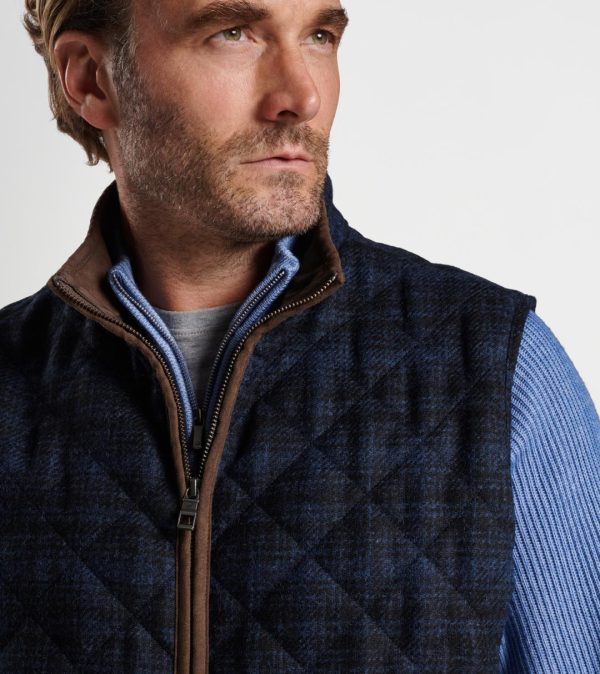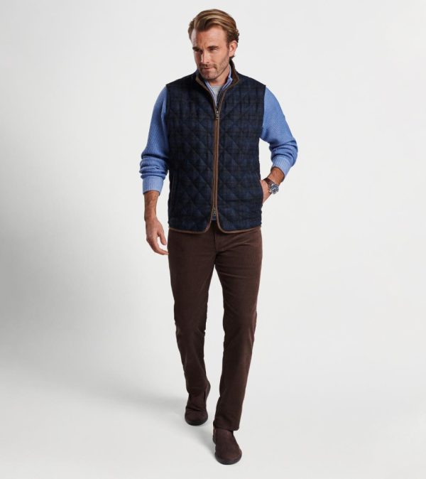 Elevate your cold-weather wardrobe with this exceptional quilted vest, expertly crafted from premium English Shetland wool featuring a classic plaid design. The wind-resistant exterior provides superior protection against harsh elements, while the cozy fleece interior delivers exceptional warmth without bulk. Thoughtfully designed with six strategically placed interior pockets for maximum utility and convenience.