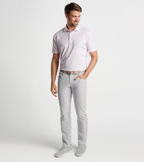 Experience exceptional comfort and performance wherever your day takes you with our signature performance polo. Crafted from premium antimicrobial jersey fabric featuring advanced moisture-wicking technology, UPF 50+ sun protection, and effortless care, with four-way stretch for maximum mobility both on and off the golf course. Finished with a sophisticated self-fabric collar and three-button placket for a polished look.