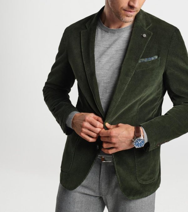 Experience timeless cool-weather sophistication with this exceptionally soft jacket, expertly crafted from premium cotton corduroy featuring subtle stretch for enhanced mobility. Designed with a natural shoulder construction and half-lined interior for effortless comfort and easy layering. Elevate your style with refined details including a classic notched lapel, elegant barchetta chest pocket, artful teardrop buttonholes, and sophisticated finishing touches like a hand-tacked lapel pin and genuine Italian horn buttons.