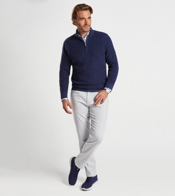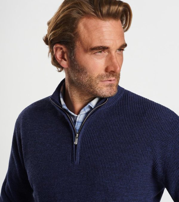 Experience exceptional comfort with this expertly crafted quarter-zip featuring a distinctive twisted 12 gg knit that combines rich texture with sophisticated casual style. The premium supima cotton and Merino wool blend delivers unmatched softness and luxurious comfort, finished with refined rib knit detailing at the collar, cuffs, and hem for a polished look.