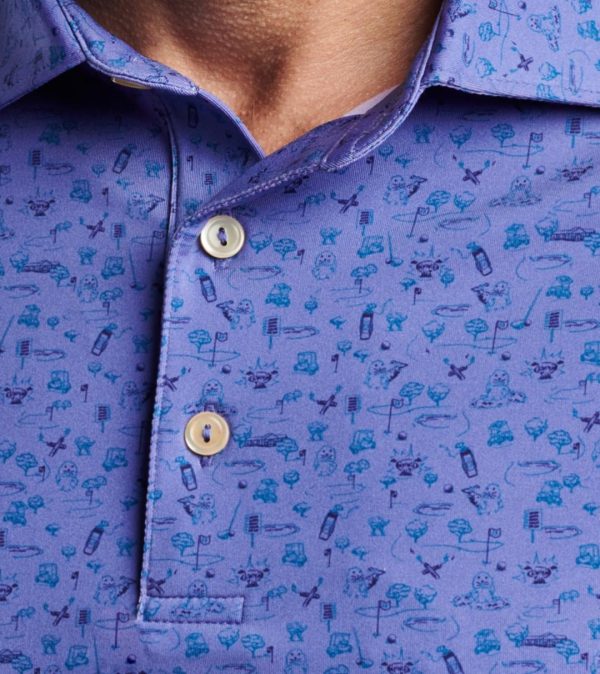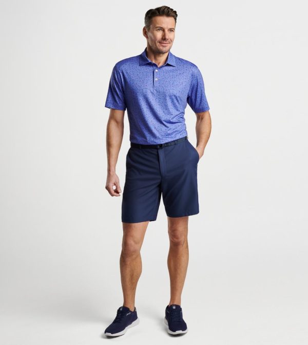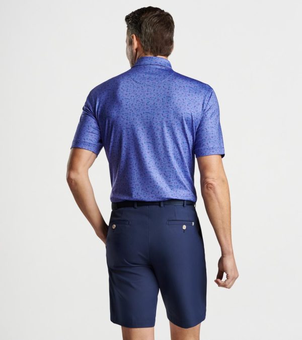 Experience exceptional comfort and performance wherever your day takes you with our signature performance polo. Crafted from premium antimicrobial jersey fabric featuring advanced moisture-wicking technology, UPF 50+ sun protection, and effortless care, with four-way stretch for maximum mobility both on and off the golf course. This standout polo showcases a custom-designed golf course inspired pattern. Finished with a sophisticated self-fabric collar and three-button placket for a polished look.
