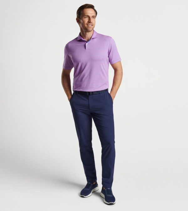 Experience exceptional comfort both on and off the course with our Crown Crafted performance polos. The premium smooth fabric delivers sophisticated performance features including advanced moisture management, four-way stretch technology, antimicrobial protection, easy-care maintenance, and UPF 50+ sun protection. Designed in our signature Tailored Fit, this premium polo features an elegant Edwin spread collar, refined two-button placket, and luxurious mother-of-pearl buttons.