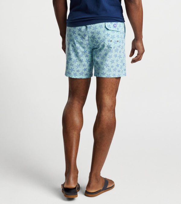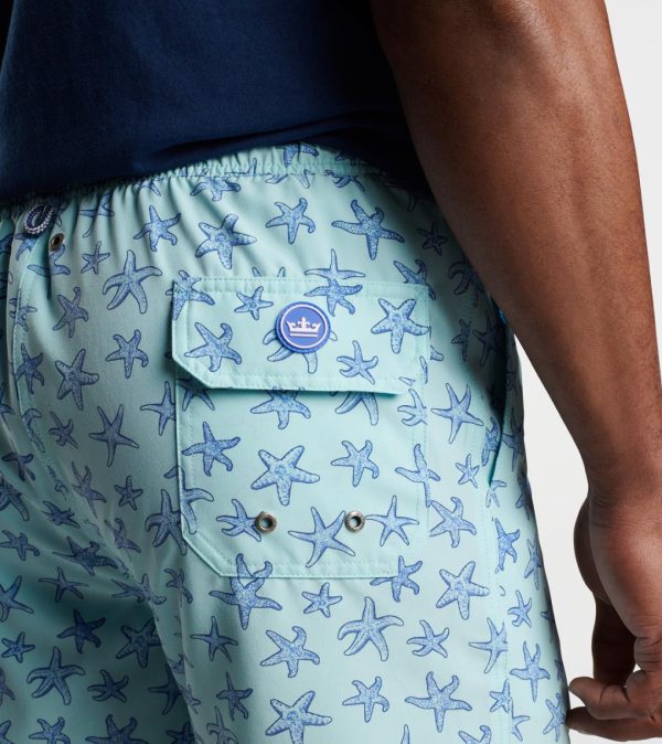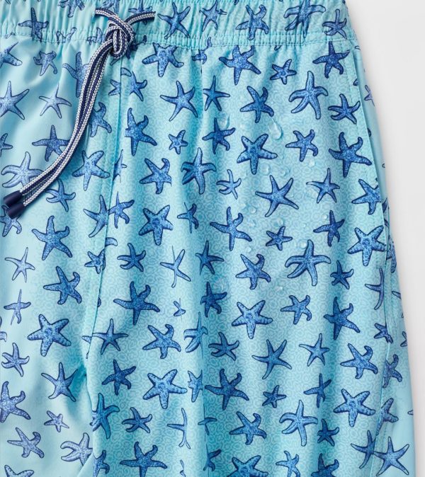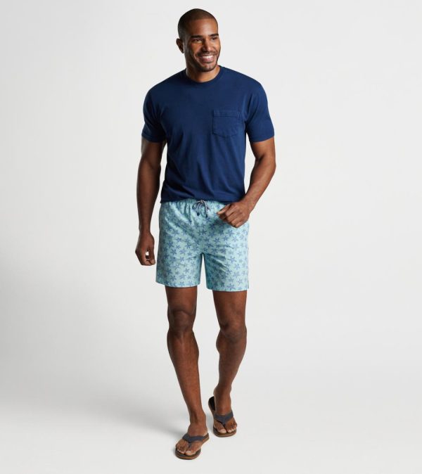 Elevate your beach or pool experience with these premium swim trunks designed for exceptional comfort and style. Featuring innovative four-way stretch fabric, a refined mesh liner, and thoughtful tagless construction for all-day wearability. Showcasing an exclusive hand-designed starfish pattern that reveals subtle tonal details when wet, creating a captivating visual effect. Finished with a modern 7″ inseam for contemporary appeal.