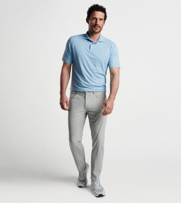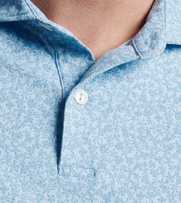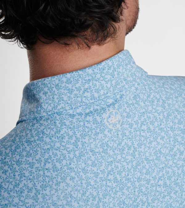 Our Crown Crafted performance polos deliver exceptional comfort both on and off the golf course. The premium smooth fabric offers sophisticated performance features including advanced moisture management, flexible four-way stretch, and reliable UPF 50+ sun protection. This tailored fit polo showcases an exclusive custom-designed floral pattern that stands out with style. Finished with our signature Edwin spread collar, a clean two-button placket, and genuine mother-of-pearl buttons for elevated sophistication.